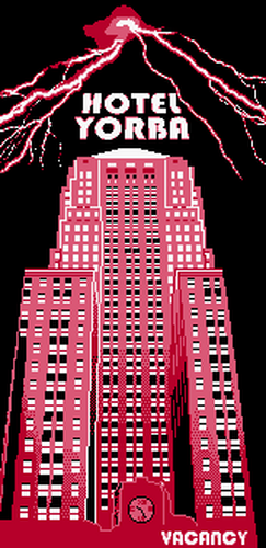 The game features two levels. The first level is a De Stijl maze. Help Meg navigate her way through the maze to the Hotel Yorba. But be careful, avoid the moving blocks. One wrong move and you will be transported to a new location.